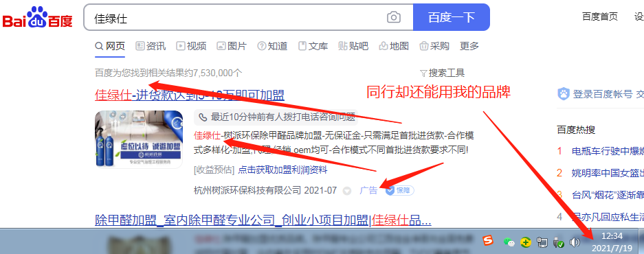杭州樹派環(huán)保科技有限公司利用我司商標(biāo)"佳綠仕"進(jìn)行百度搜索關(guān)鍵詞宣傳,嚴(yán)重影響我司合法權(quán)益。
