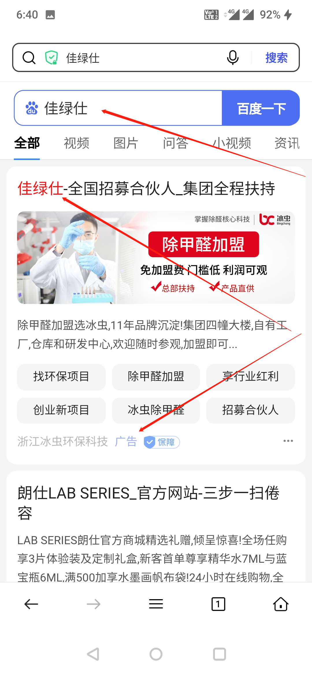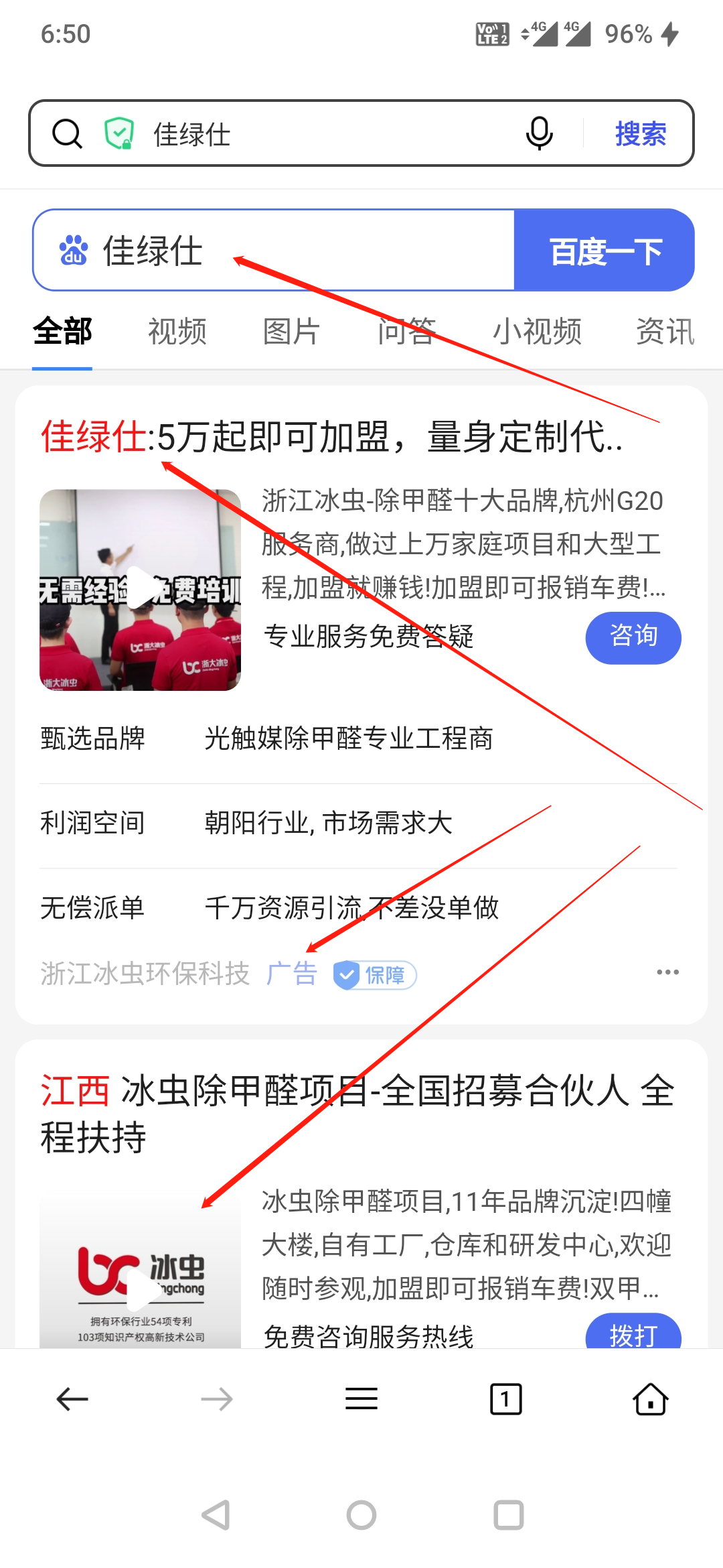 浙江冰蟲(chóng)環(huán)保科技有限公司利用我司商標(biāo)"佳綠仕"進(jìn)行百度搜索關(guān)鍵詞宣傳,嚴(yán)重影響我司合法權(quán)益。